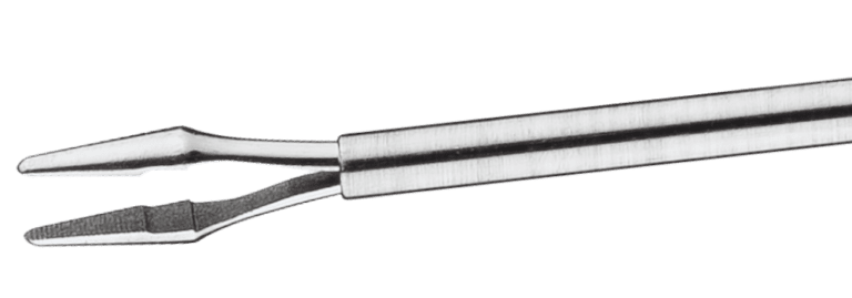 32mm shaft on a short handle with 1.25mm microserrated jaws and matte finish to minimise reflection